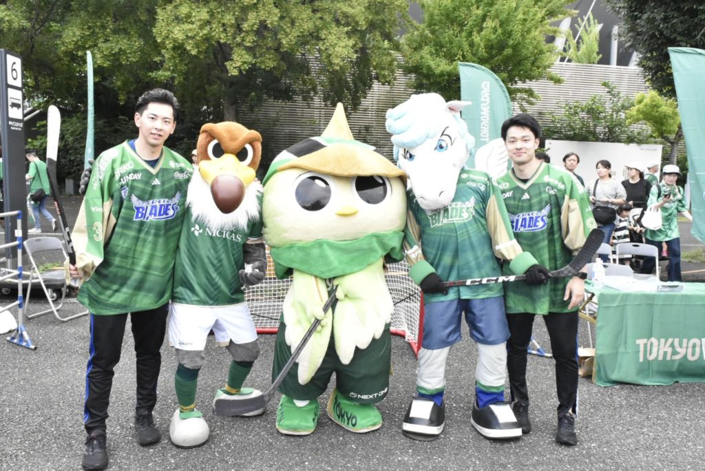 ホッケー体験をしていただいた方には東京ヴェルディ公式マスコットのリヴェルンと東北フリーブレイズ公式マスコット、ブレイジーのオリジナルシールをプレゼント(数量限定)