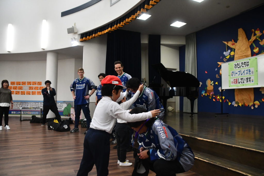 また園児の皆さんからは選手への応援としてメダルをプレゼントしてもらい、選手もたくさんのエネルギーをもらいました。