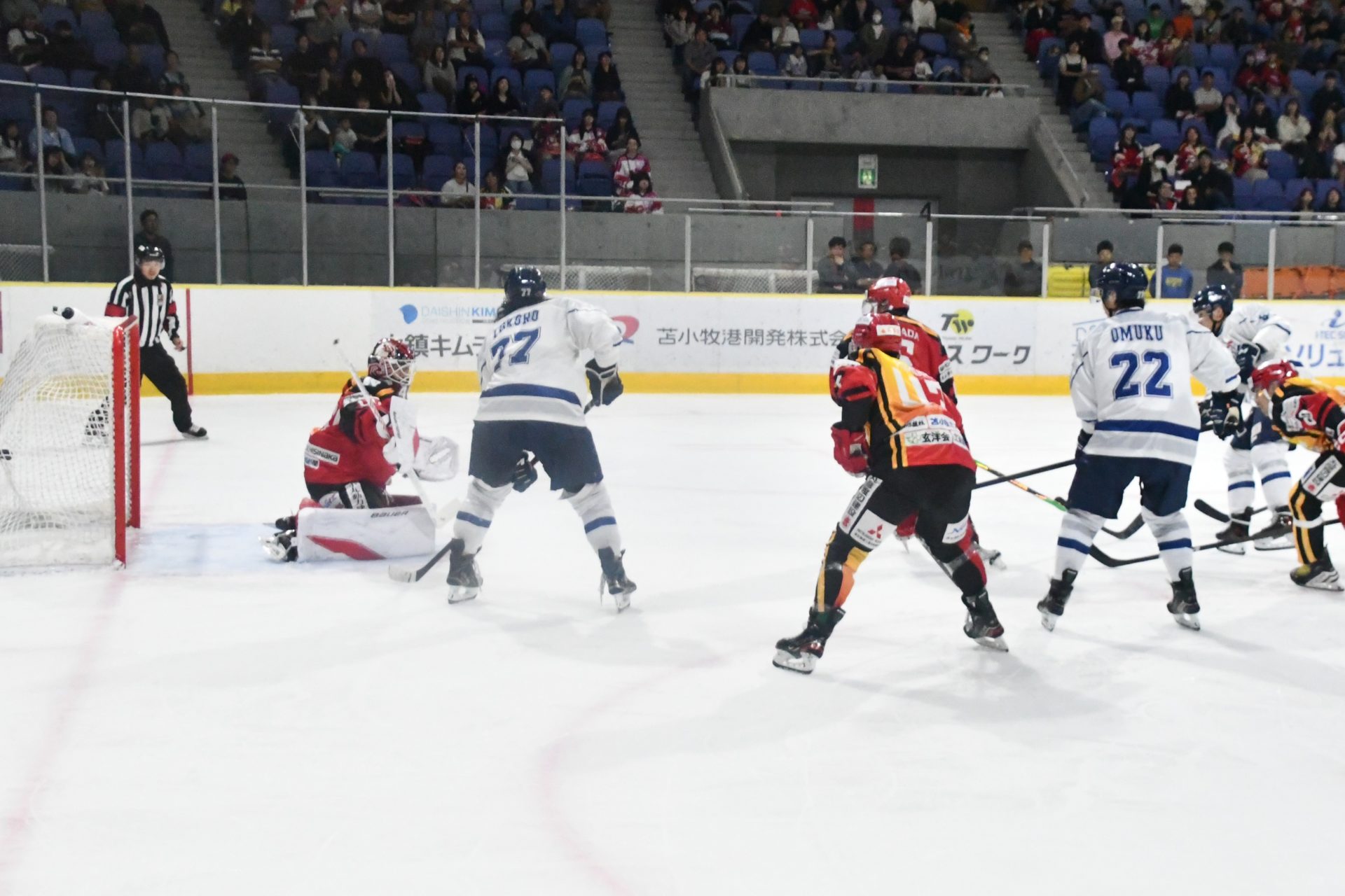 タイトな移動からの試合になったが、第2ピリオド終了まではゲームプラン通り積極的にプレッシャーを与えてハードに戦いながら試合を進めることができた。第3ピリオドに入ってから、相手のプレッシャーに押され始め、守備面でバランスをくずして相手にチャンスを与え失点につながった。課題は、チームとしての守りなので、修正して明日の試合に臨みたい。
