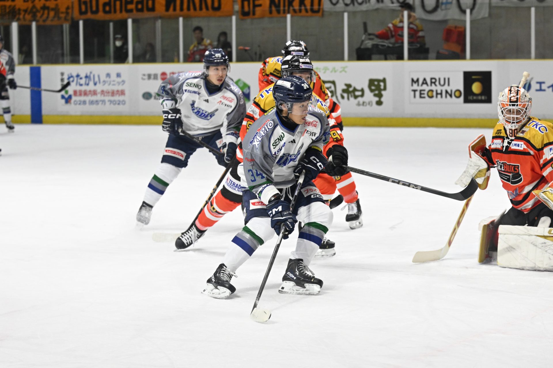 試合開始数分間は、準備してきたプレーでチャンスをいくつか作ることができたが、徐々に相手のリズムでプレーされる時間が多くなってしまいました。なんとか、1失点で第1ピリオドを終えることができたという内容でした。第2ピリオドからは、均衡した試合展開となり得点のチャンスもありましたが、最後まで相手ゴールキーパーを崩すことができませんでした。課題は、プレーの判断スピードを上げることとシンプルにプレーすること。それに加えて、パワープレーのチャンスを得点に繋げること。明日の試合に向けてしっかりと準備して勝利して八戸に帰りたい。