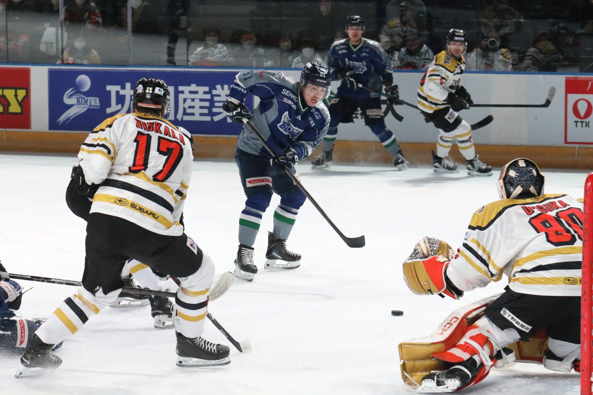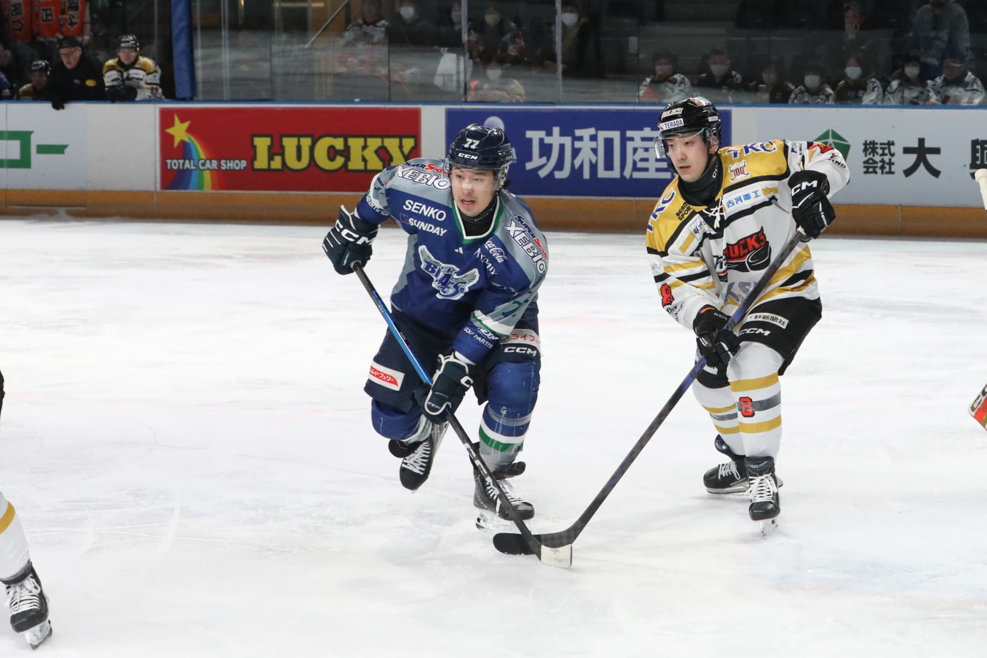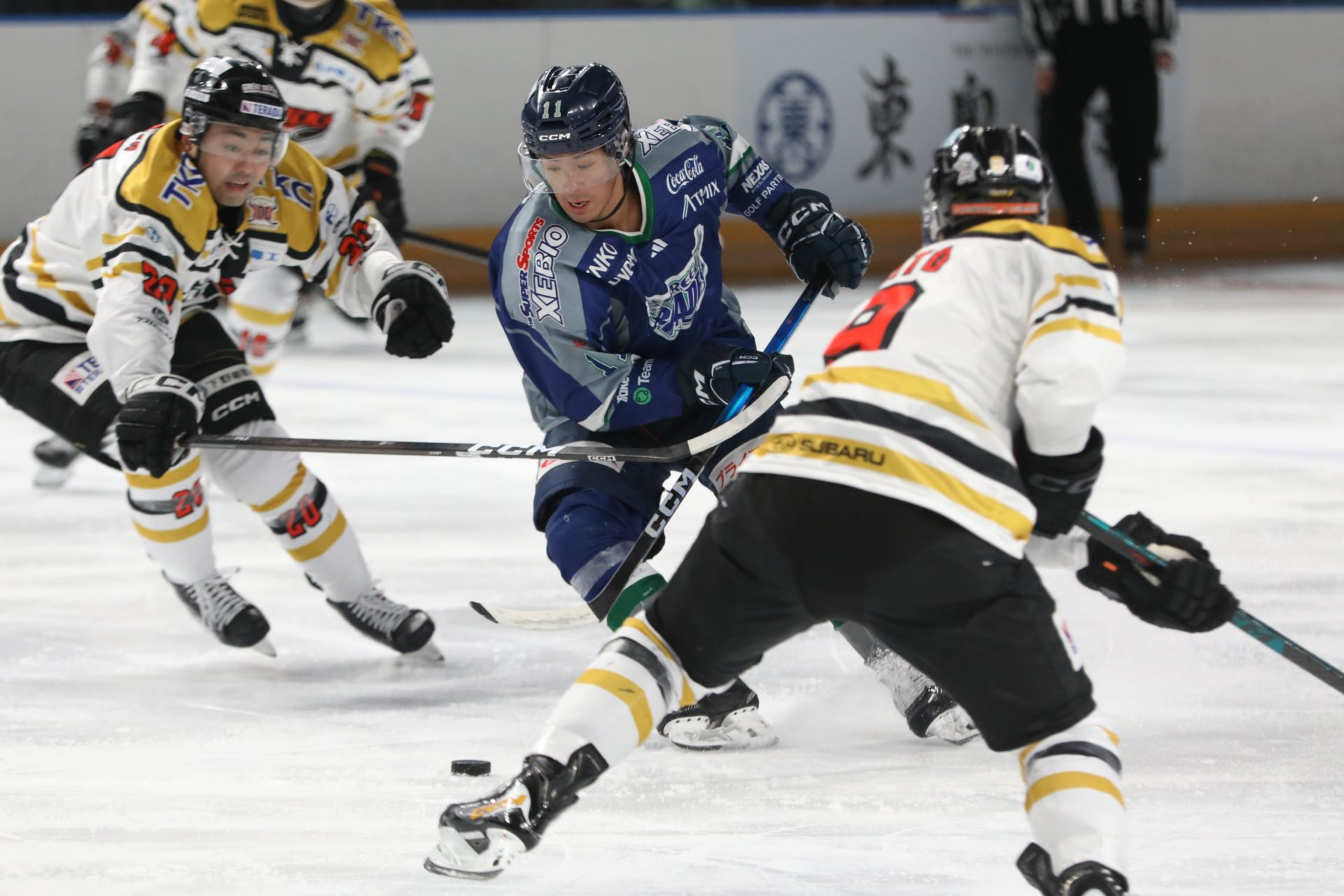 プレーオフ進出へ向けて負けられない試合となりました。これまでの戦成績から今日の相手とは、土曜、日曜と連勝することが非常に難しい試合になることを予想していました。想定通り、第1ピリオドから相手のリズムで試合を進められる展開となり、パワープレーで先制しましたがそこからフラストレーションが溜まる試合となり、ペナルティが多くなってしまいました。それでも選手たちが踏ん張ってくれて第3ピリオドの5対3のパワープレーで同点、その勢いのまま決勝ゴールを決めて7連勝となりました。プレーオフ進出に向けて、気を引き締めて次の試合に準備したい。