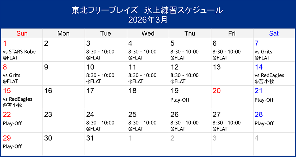 氷上練習スケジュール