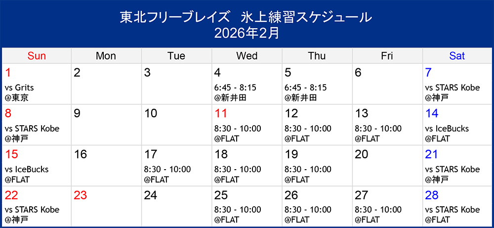 氷上練習スケジュール